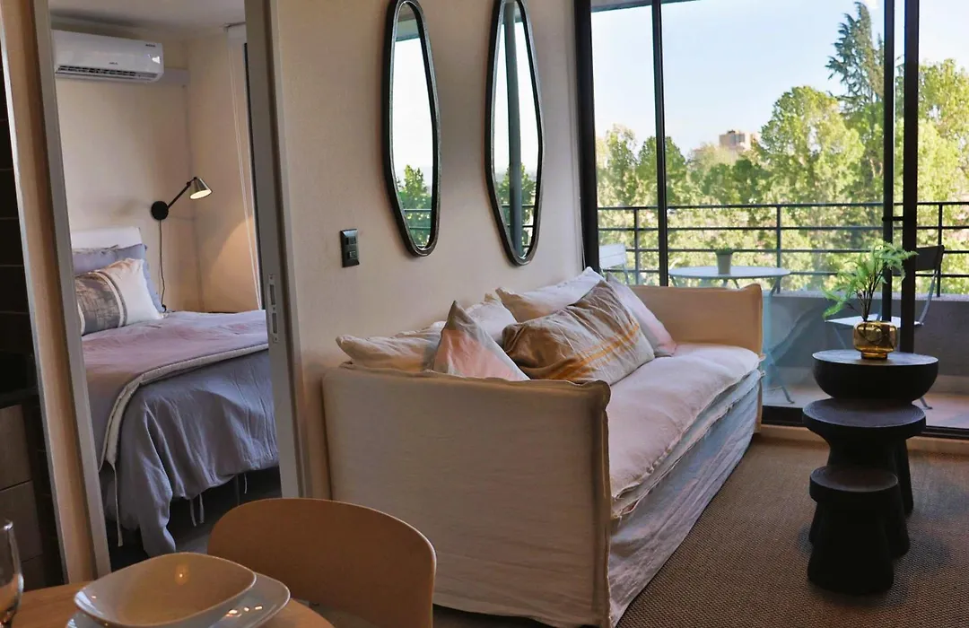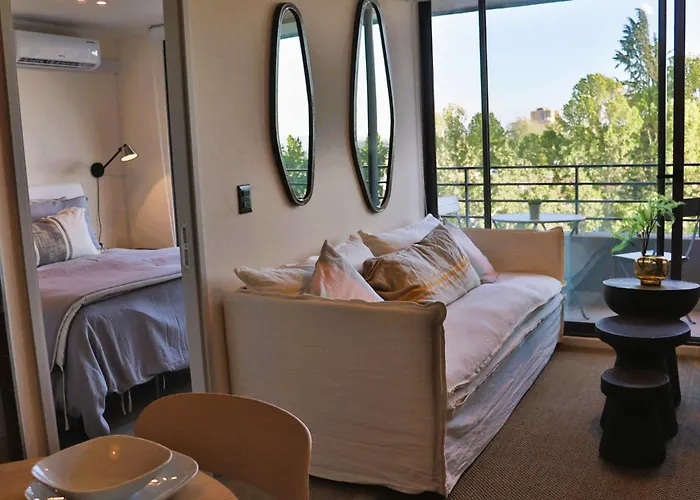 The 2-room Hom L Wifi, Aa, Parking, A Pasos Del Metro Apartment Santiago is situated only a 6-minute walk from the Museum of Solidarity Salvador Allende and 20 km from Arturo Merino Benitez airport. Located in the Lomas de Chapultepec district of Santiago, the spacious 60 m² apartment boasts a patio overlooking the city.